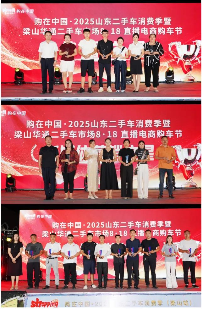 活動現(xiàn)場,梁山縣經(jīng)濟開發(fā)區(qū)管委會副主任肖文紅為二手車傳播之星頒獎,表彰其在二手車行業(yè)信息傳播中的突出貢獻;梁山縣二手車市場服務中心投訴科科長張鵬為新媒體營銷之星頒獎,肯定其通過短視頻、直播等新業(yè)態(tài)推動二手車銷售的創(chuàng)新實踐;山東省二手車流通協(xié)會秘書長萬冉冉為優(yōu)秀新媒體商戶頒獎,鼓勵其探索數(shù)字化交易新路徑。