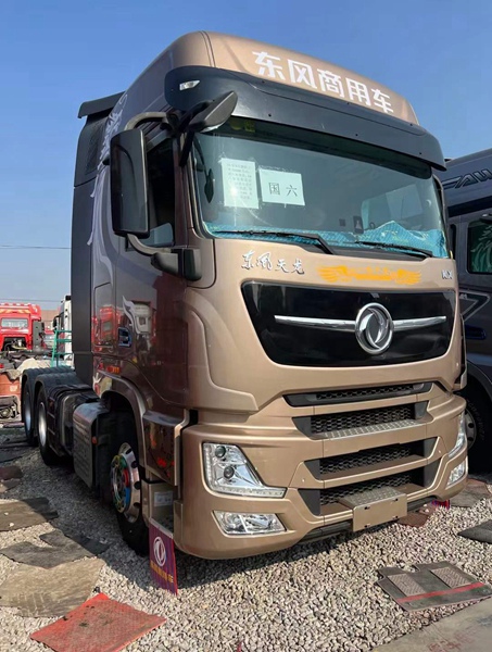 到梁山華通二手車市場(chǎng)一批東風(fēng)天龍旗艦KX-600王者版, 21年5月 600馬力, 國(guó)六康明斯14升發(fā)動(dòng)機(jī) 14擋手動(dòng)沃爾沃變速箱, 原車福伊特液緩, 雙油箱帶加熱, 駐車空調(diào)柴暖一應(yīng)俱全 3.64速比 輪胎8.8成新