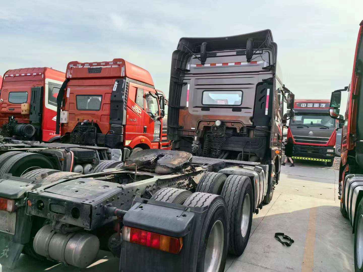 最新到梁山華通二手車市場一臺(tái)2020年4月解放JH6牽引車,此車搭配550馬力錫柴發(fā)動(dòng)機(jī),一汽手動(dòng)擋變速箱,帶原車液力緩速器,后橋3.7速比!全車輪胎九成新,前二后三板簧輕量化,精品車況。