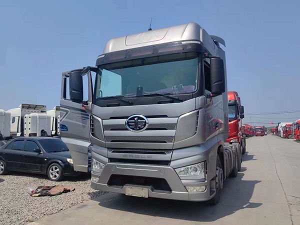 新到梁山華通二手車市場一臺(tái)精品二手解放牽引車,21年跑車,二手解放大J7牽引車,國六排放,采埃孚自動(dòng)擋帶液緩,全車鋁合金鋼圈,車況精品,包提全國。買二手貨車就到梁山華通二手車市場。