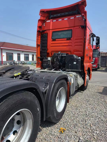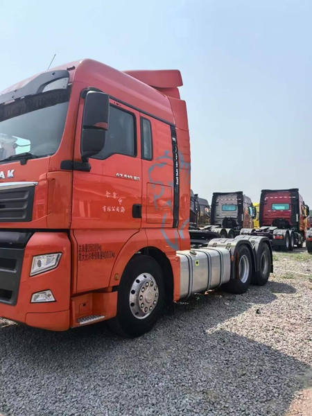 新到梁山二手貨車市場一臺國六汕德卡牽引車,二手汕德卡牽引車,21年11月,德國曼510馬力,重汽手動擋帶液緩,速比3.7,支持全國提檔分期。買二手國六牽引車到梁山華通二手車市場。