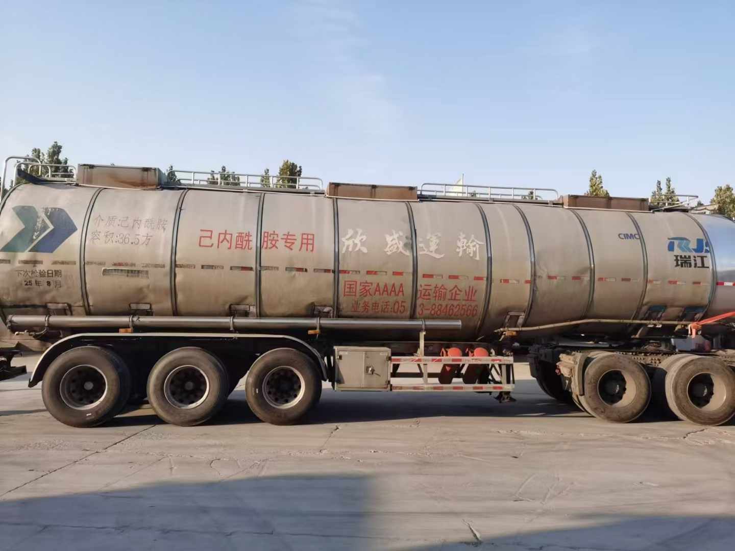 梁山二手車市場內(nèi)中集瑞江鋁合金保溫罐,公告36.5方,17年12月出廠,瑞江專用橋3個鋼圈9個鋁圈,,輪胎七成新。介質(zhì):食用油。有需要二手鋁合金保溫罐的可以來選購。